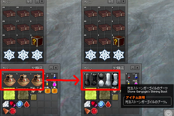 この中に入っているパーツを集めて、光るストーンガーゴイルの像にして売ります(2013/03/13現在の相場(マリー)で400k)